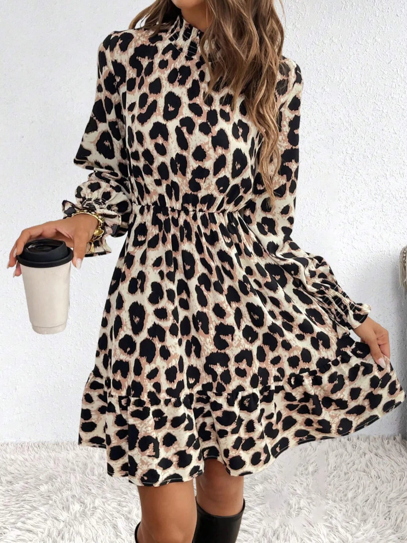 Leopard Print Long Sleeve Mini Dress