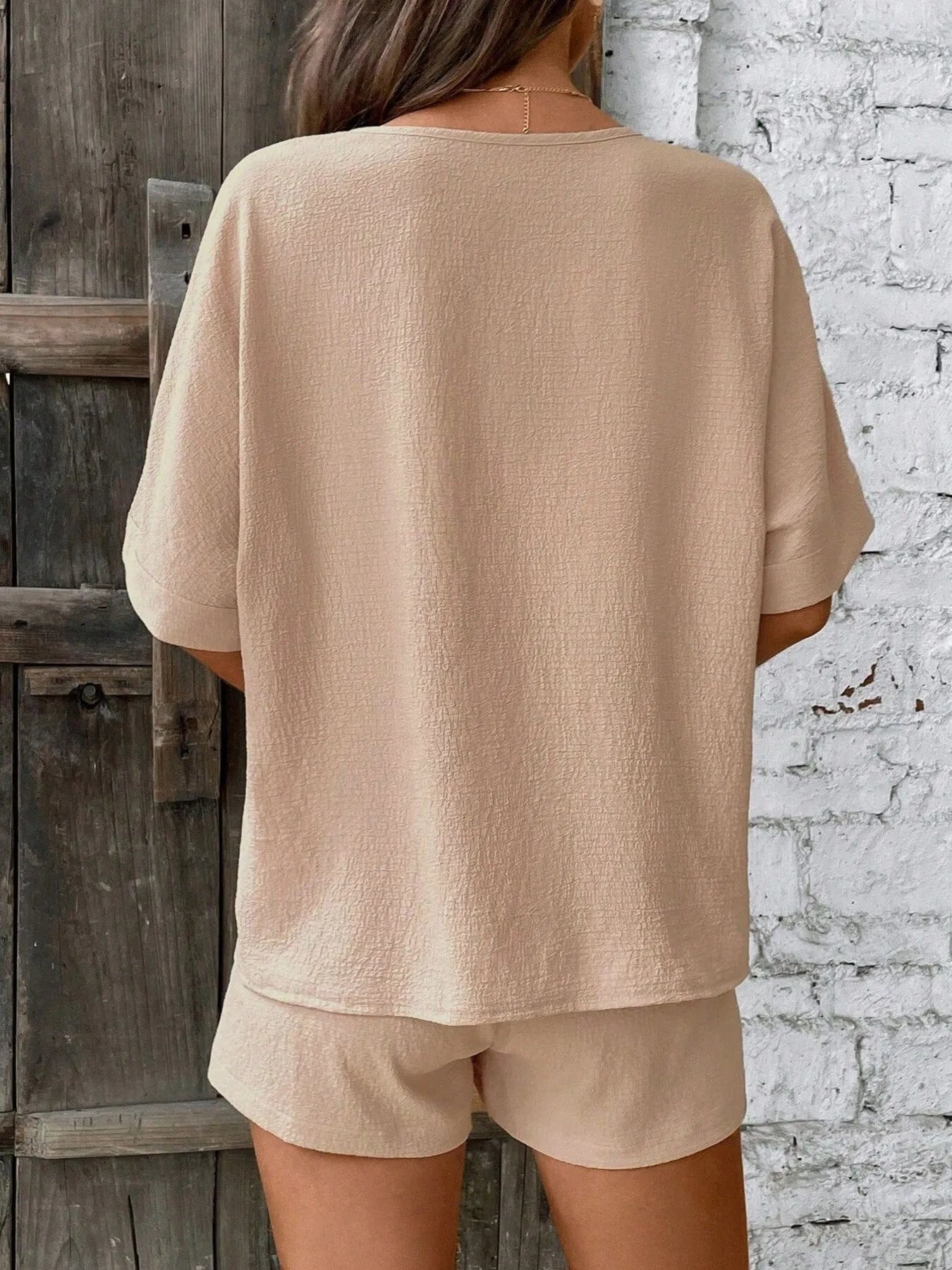 Relaxed Fit V-Neck Top and Shorts Two-Piece Set