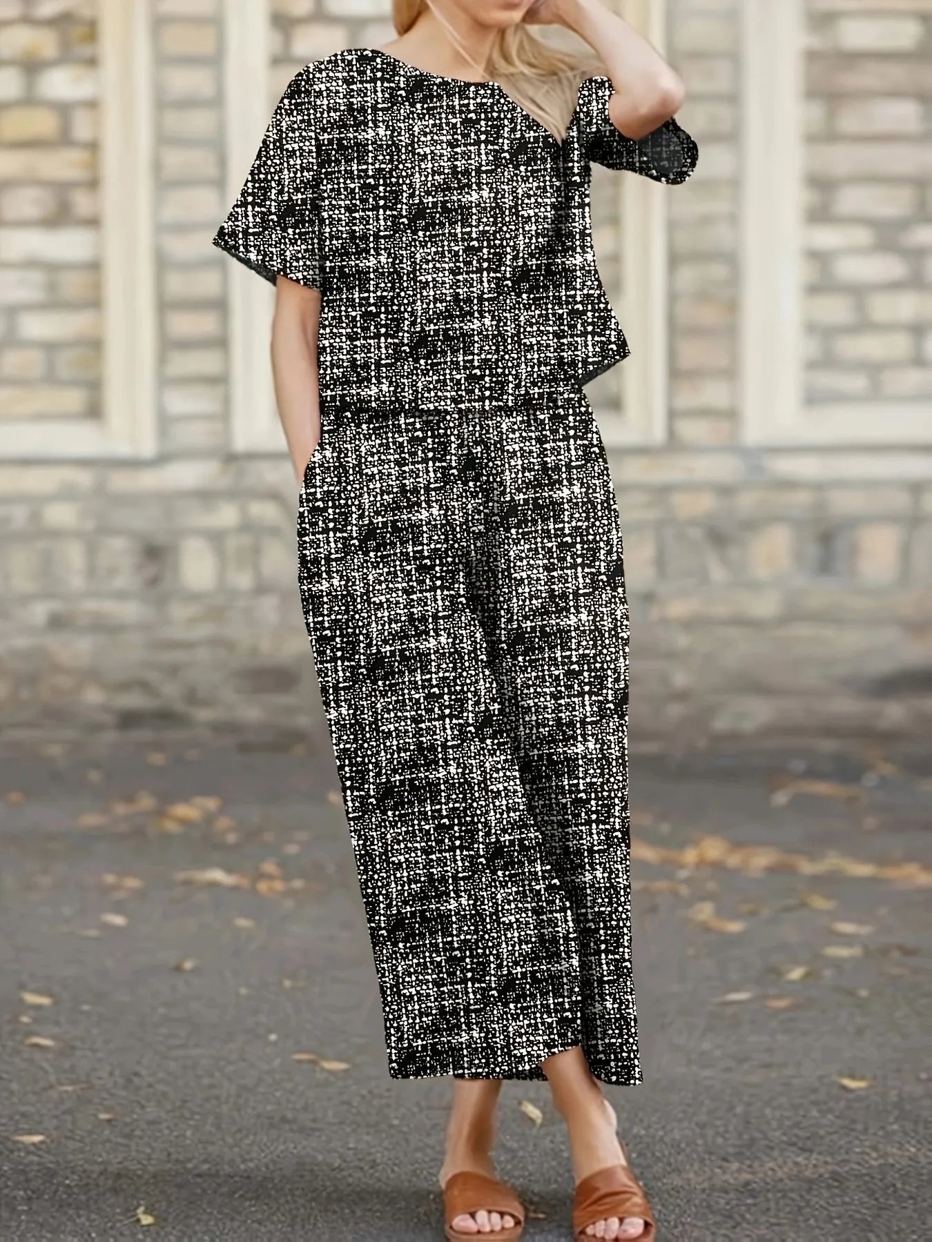 Round Neck Short Sleeve Top and Pants Set