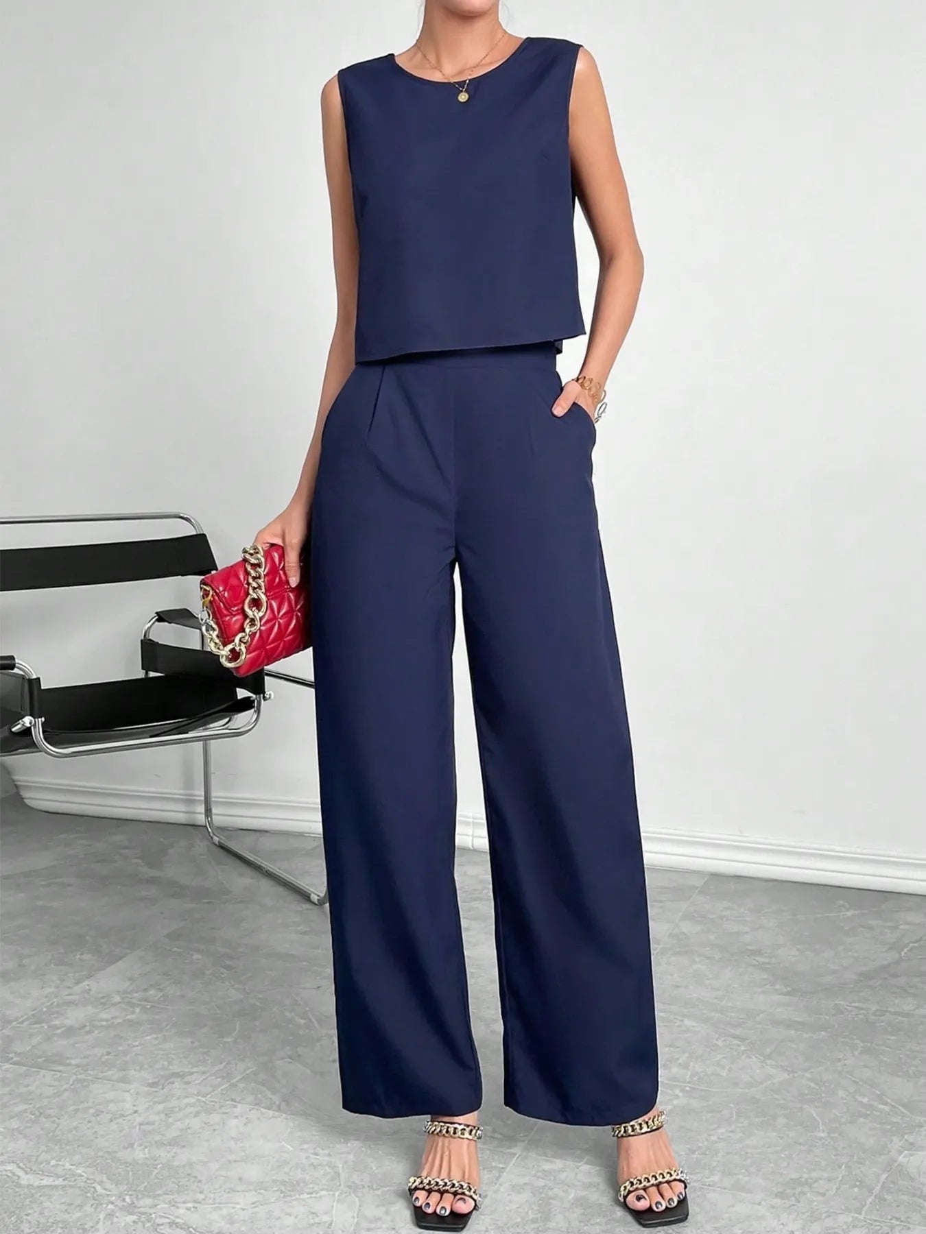 Round Neck Top and Pants Set