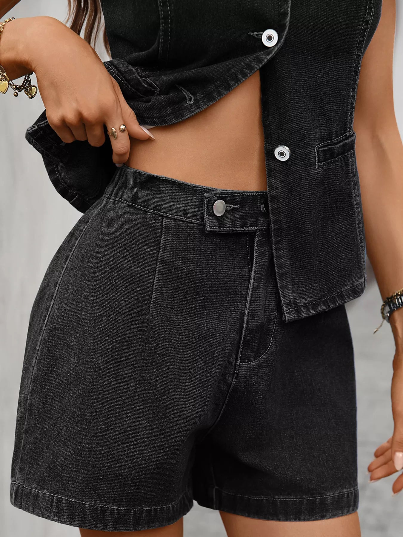 Sleeveless Button-Down Denim Vest & Shorts Set