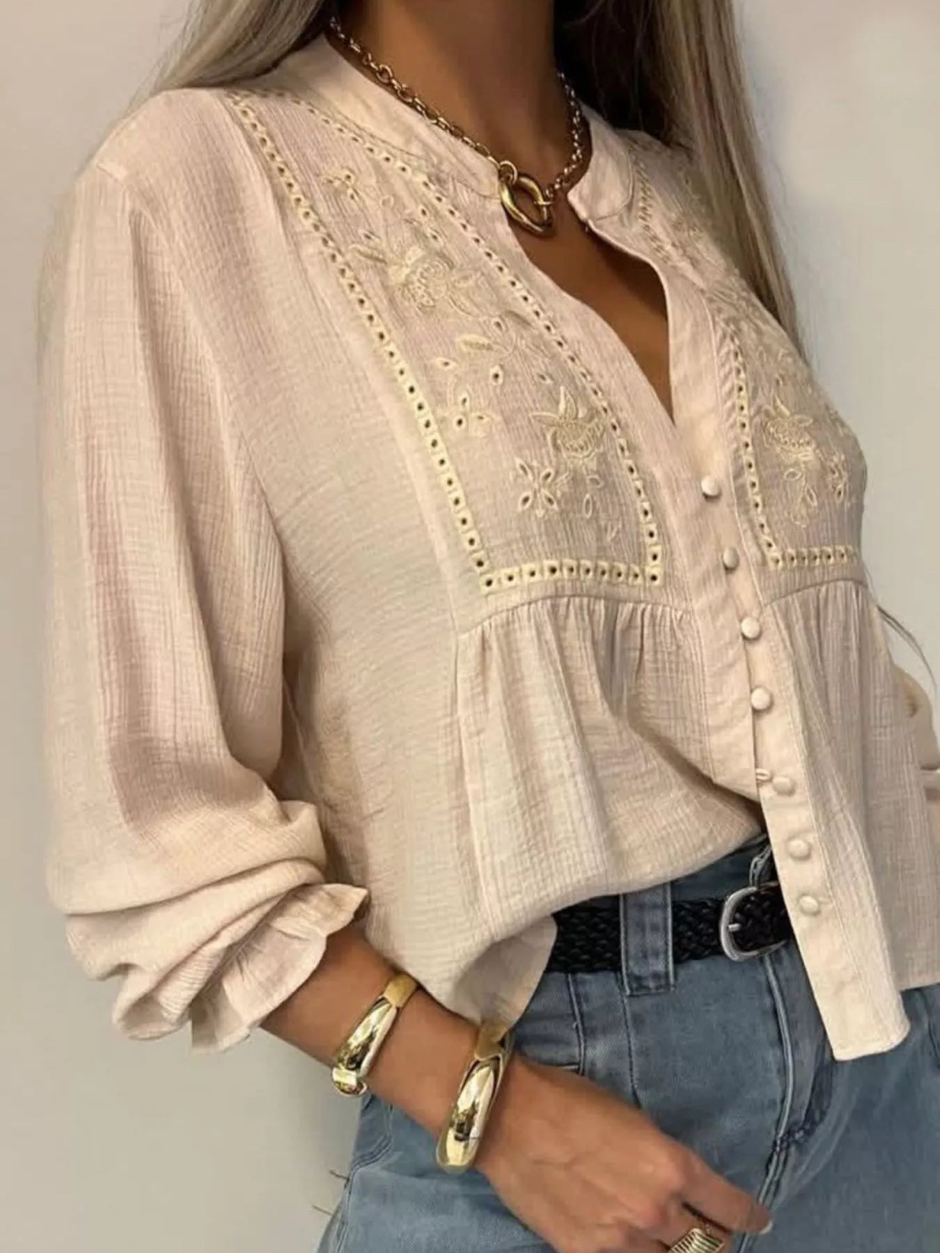 Embroidered Detail Button-Down Shirt