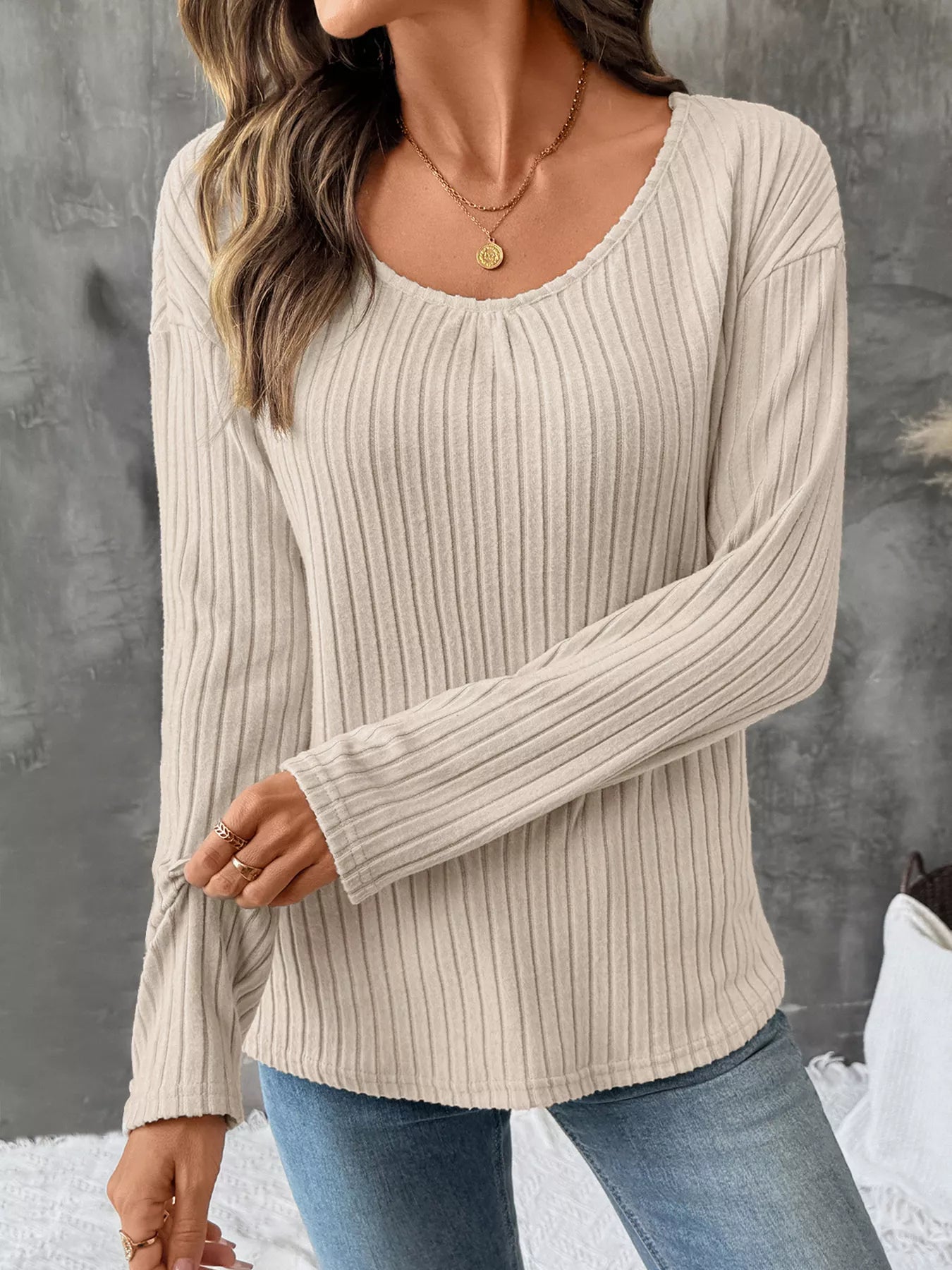 Lace Detail Ribbed Knit Long Sleeve T-Shirt