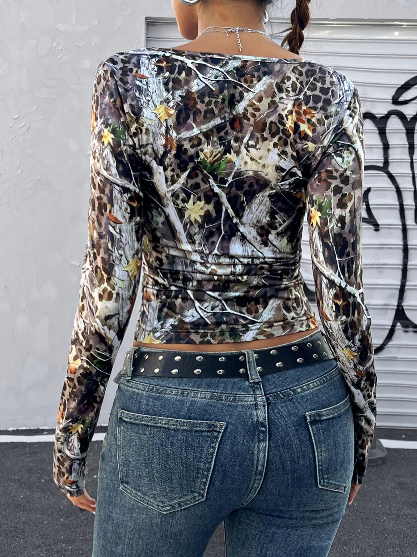 Leopard Long Sleeve Square Neck T-Shirt