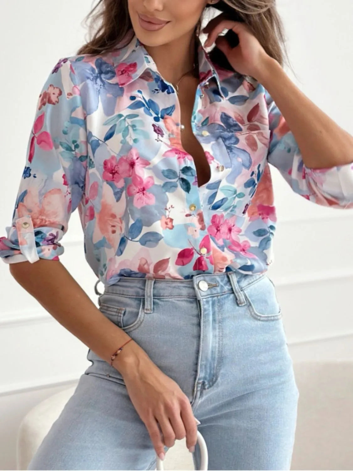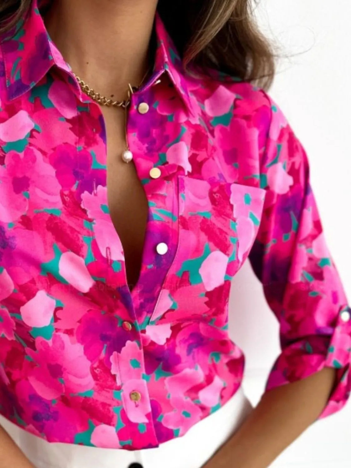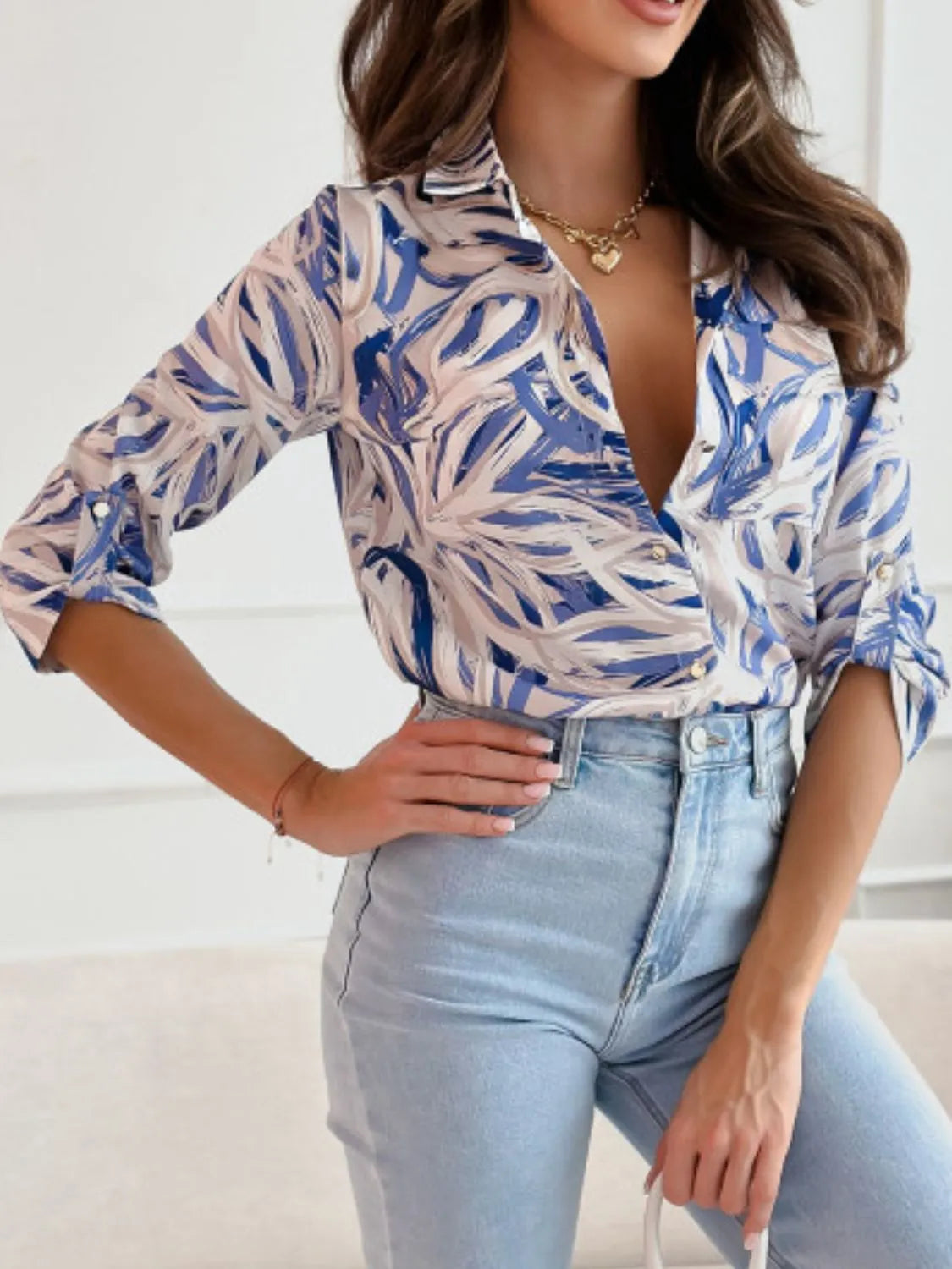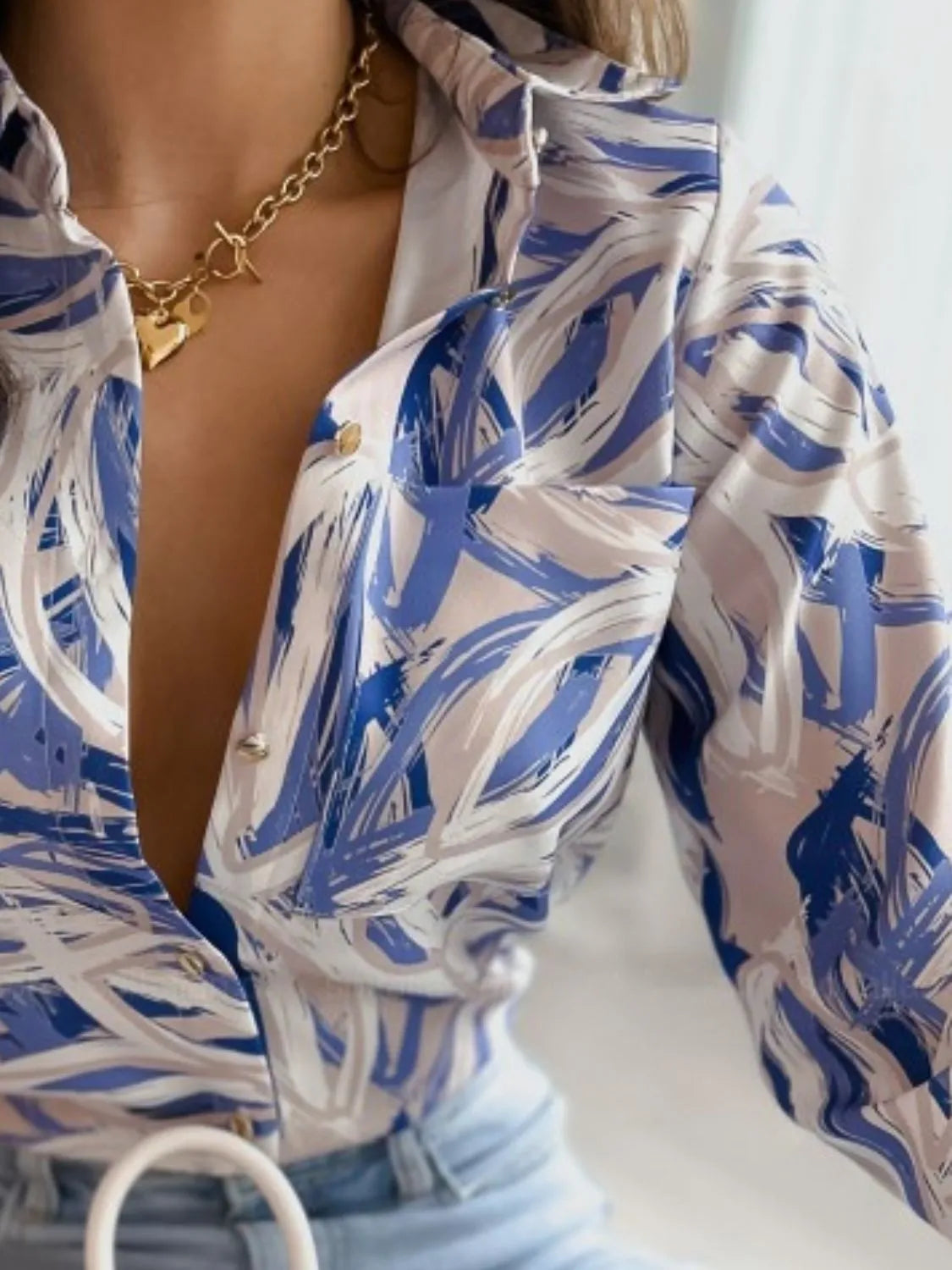 Printed Button Up Long Sleeve Shirt