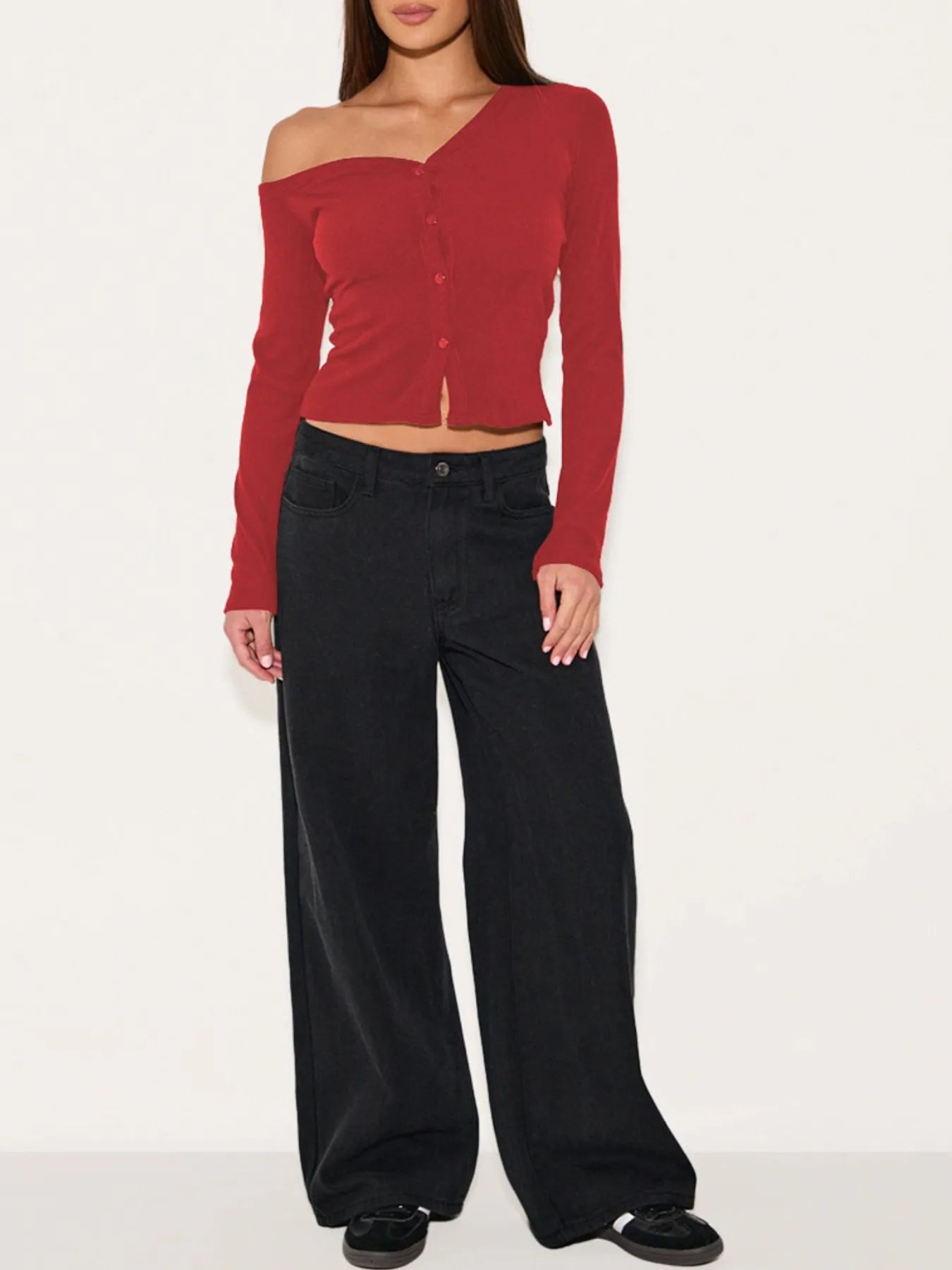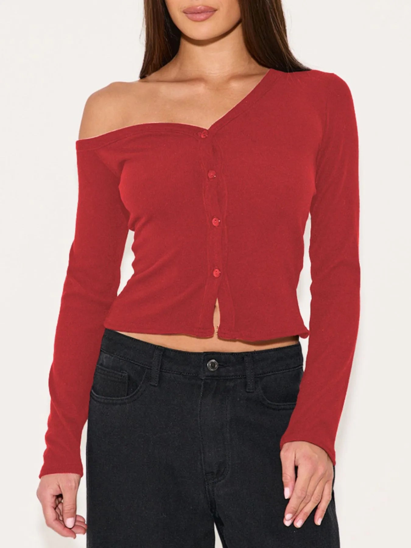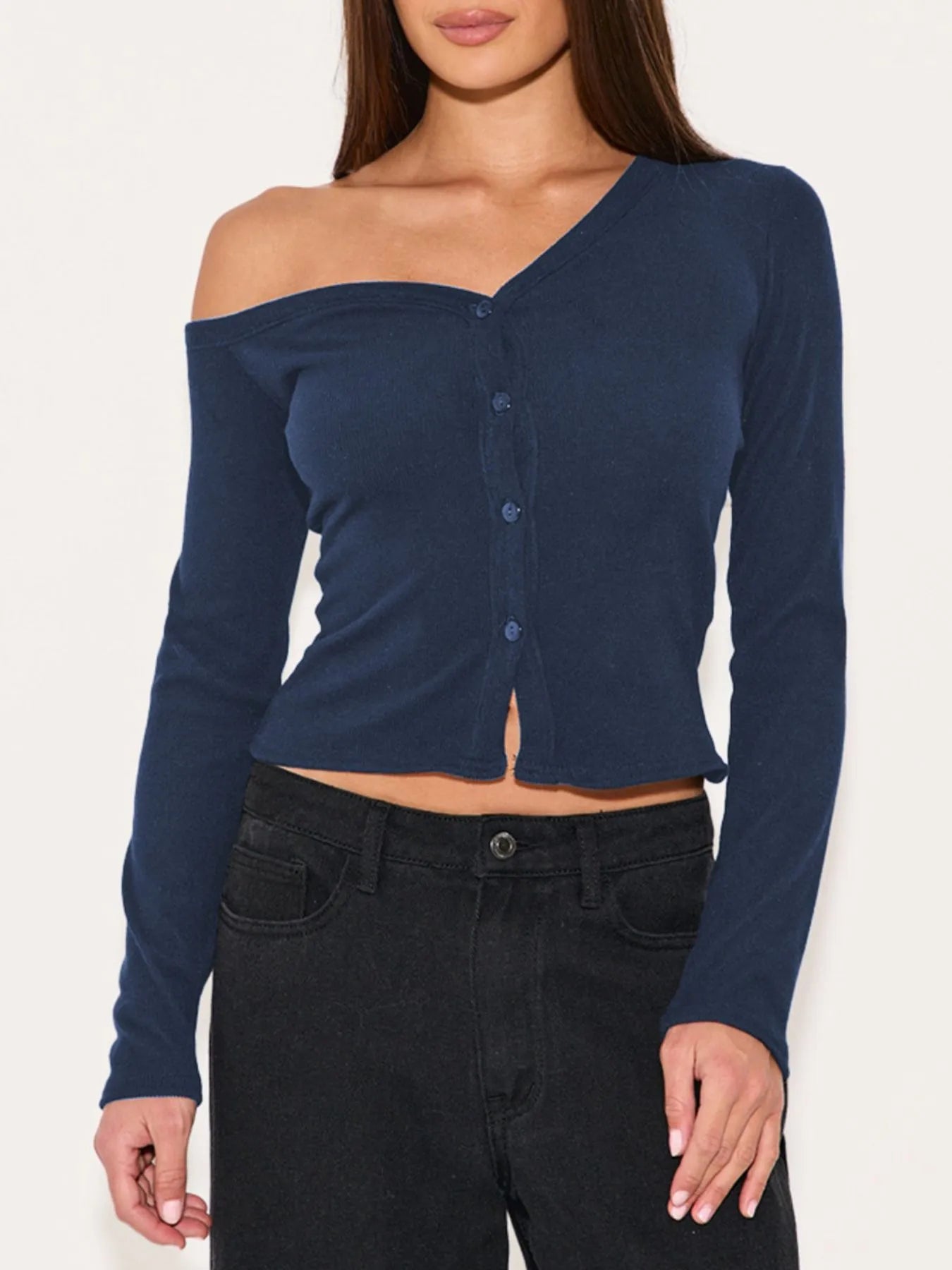 Asymmetrical Neck Button Up Cardigan