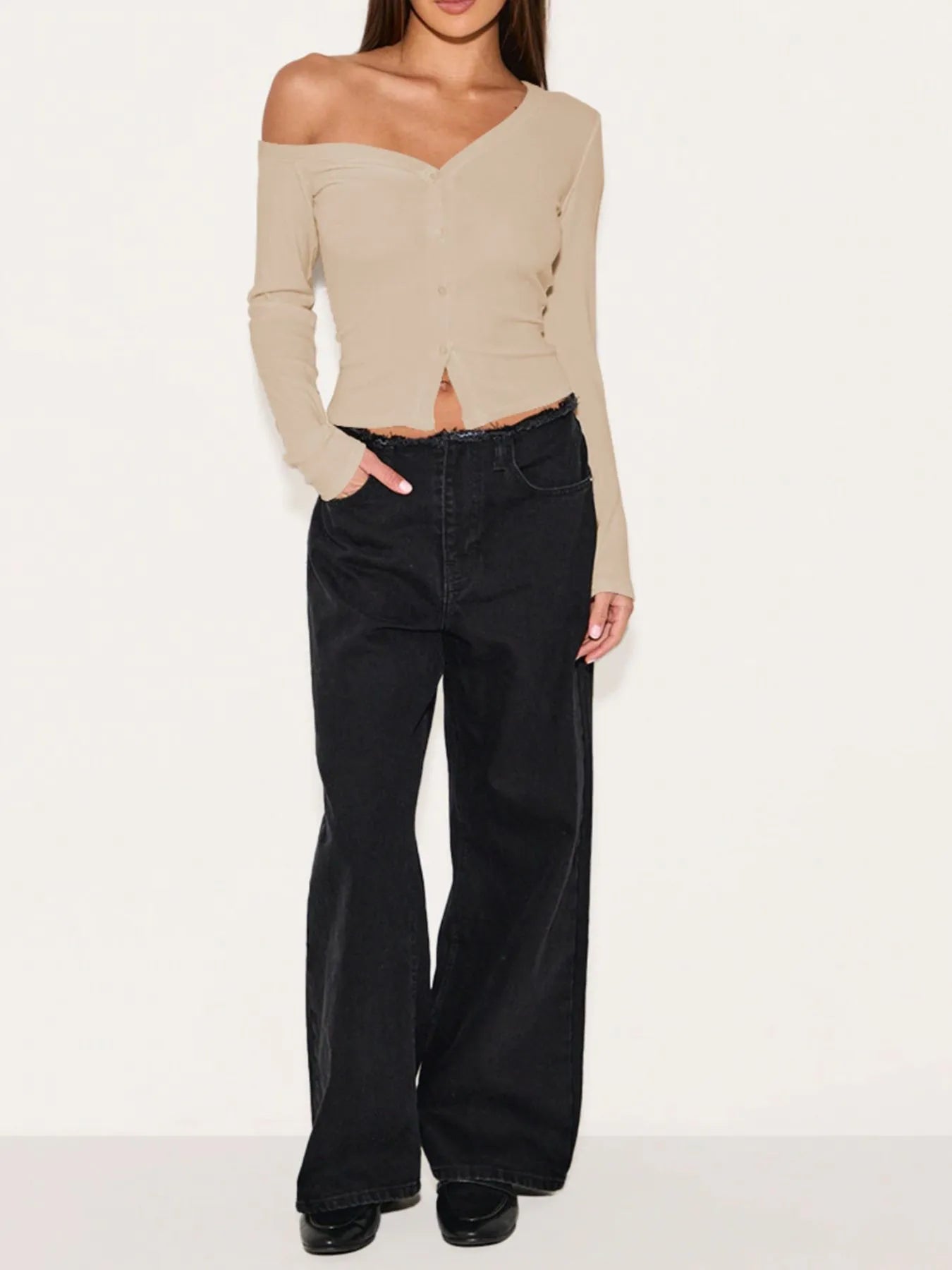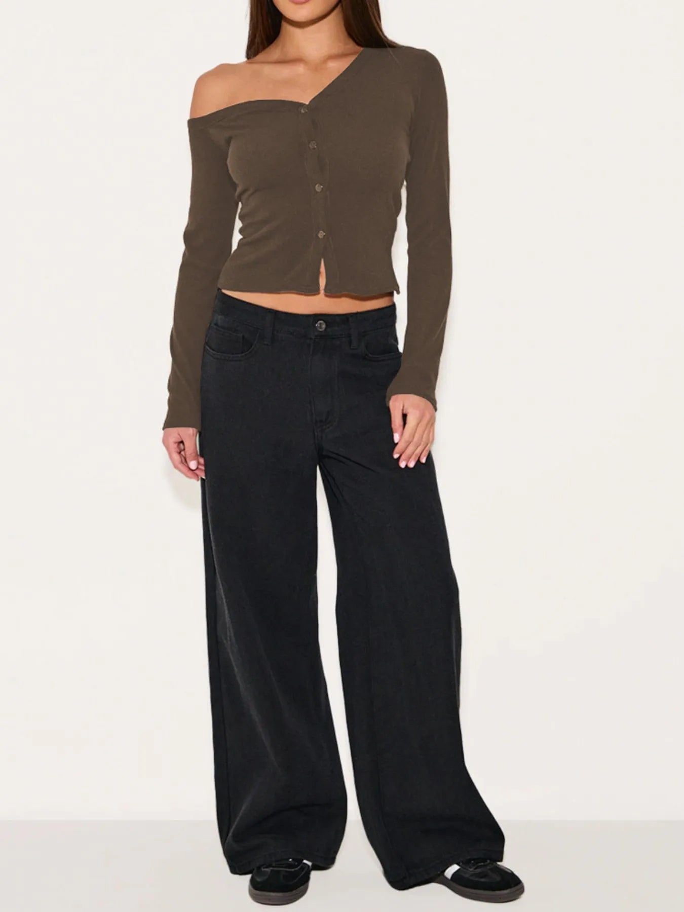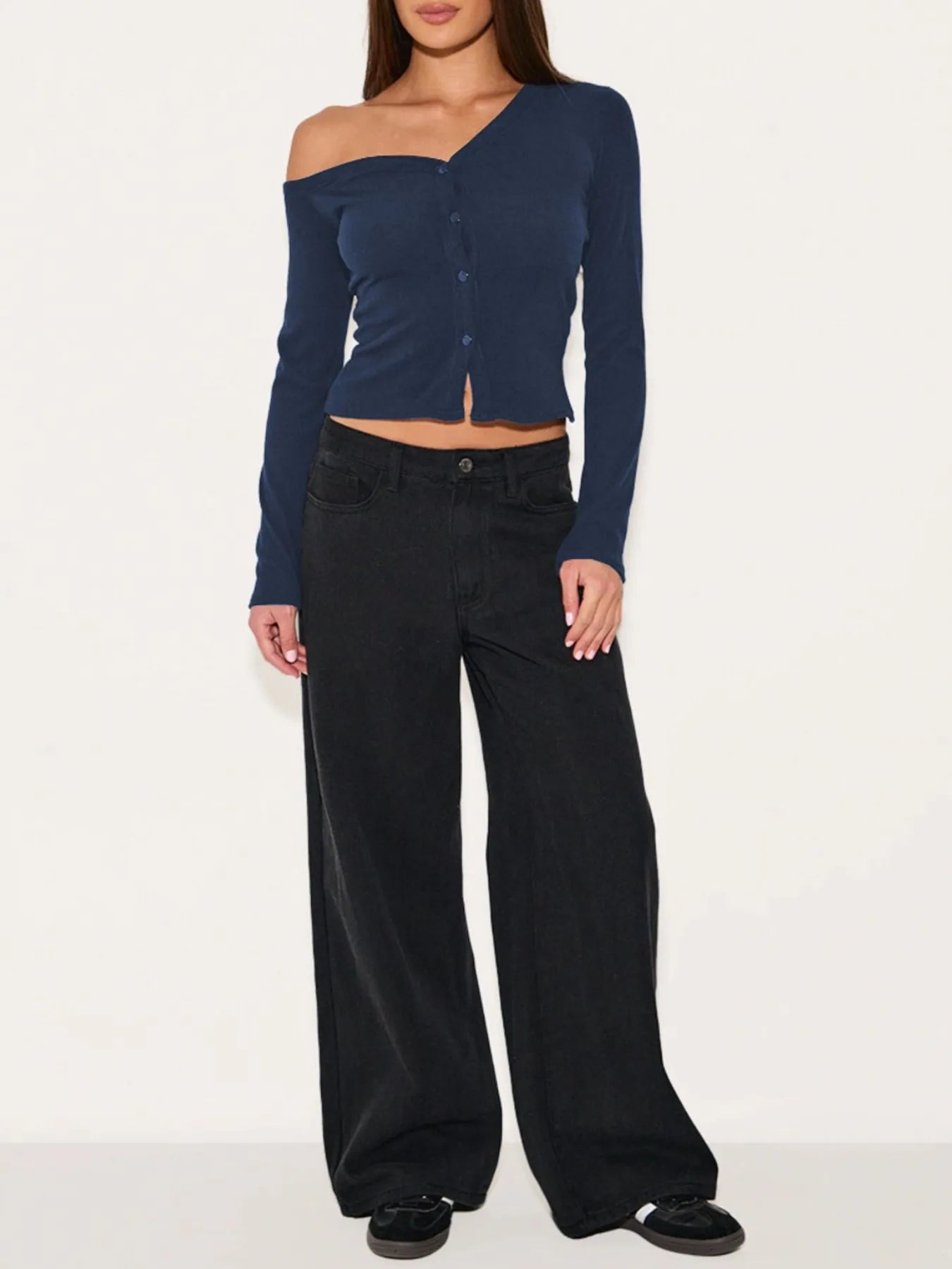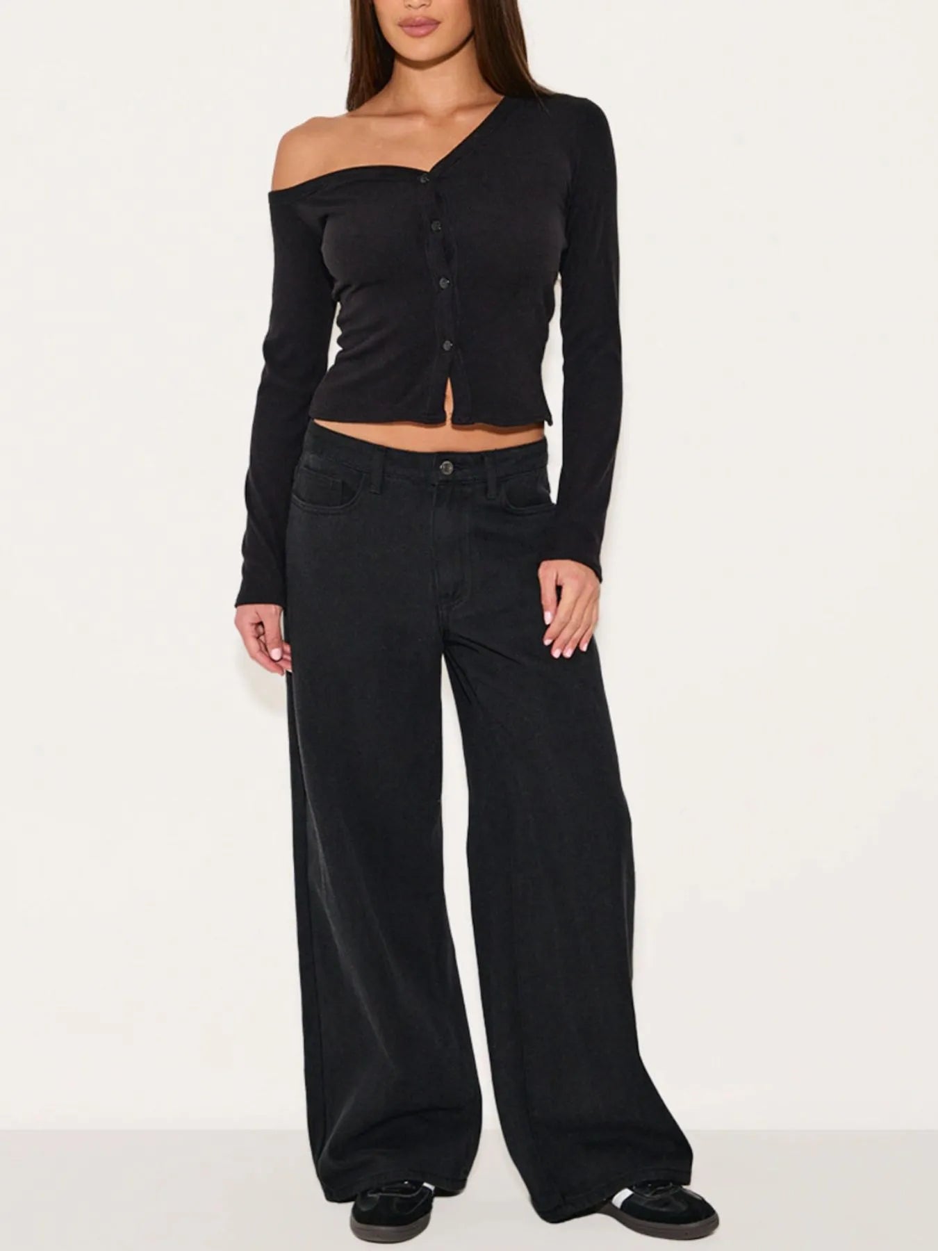 Asymmetrical Neck Button Up Cardigan