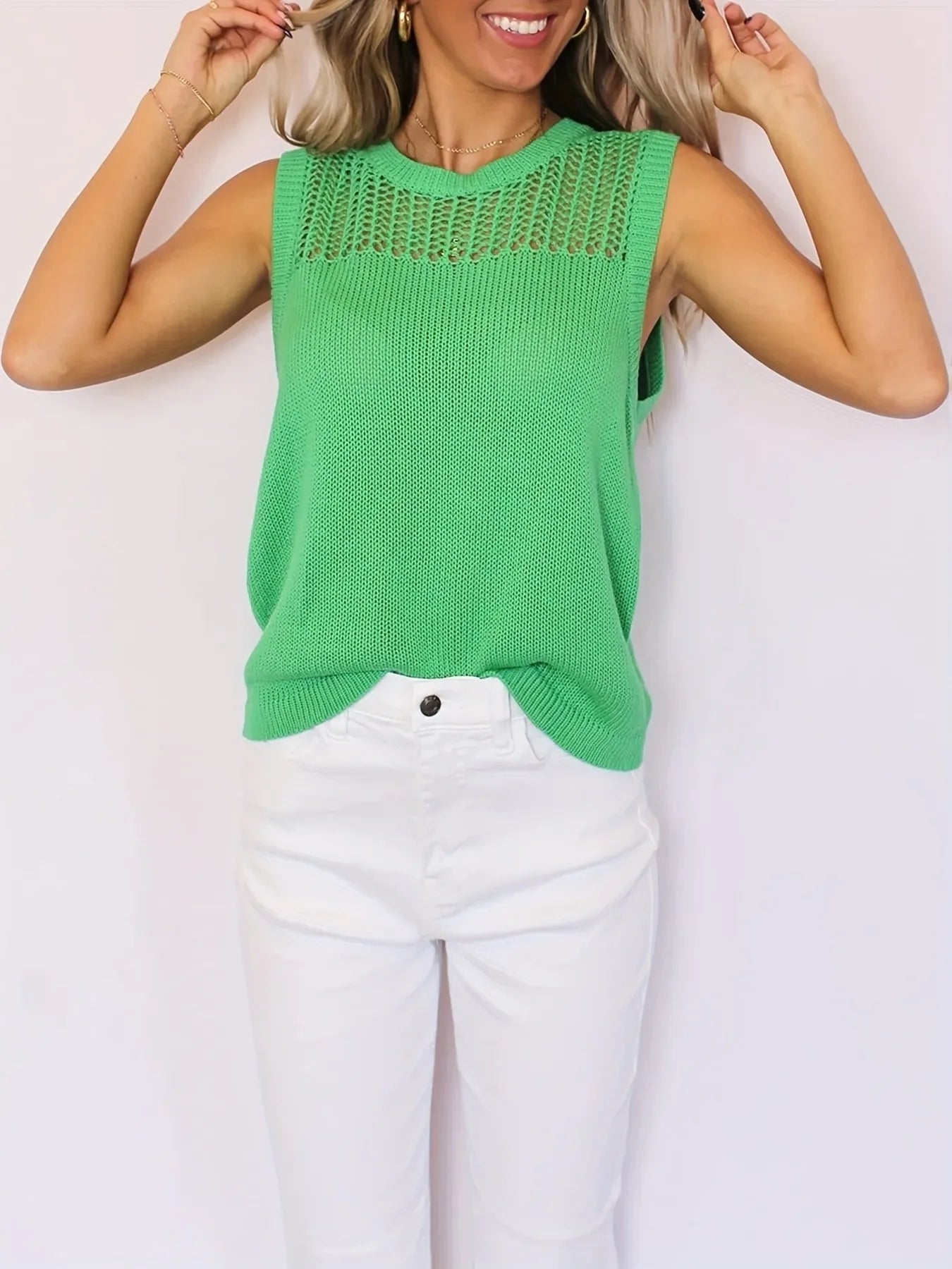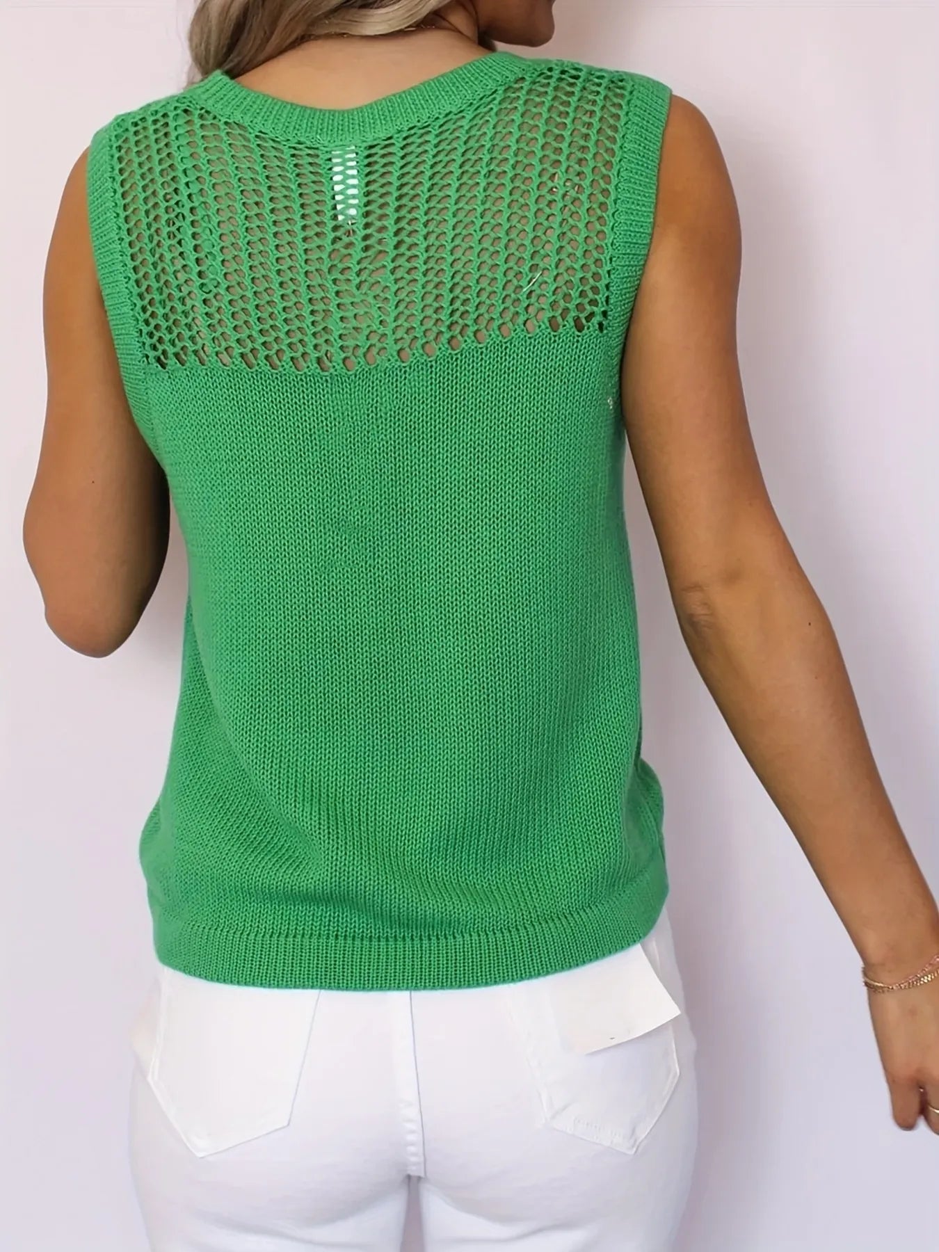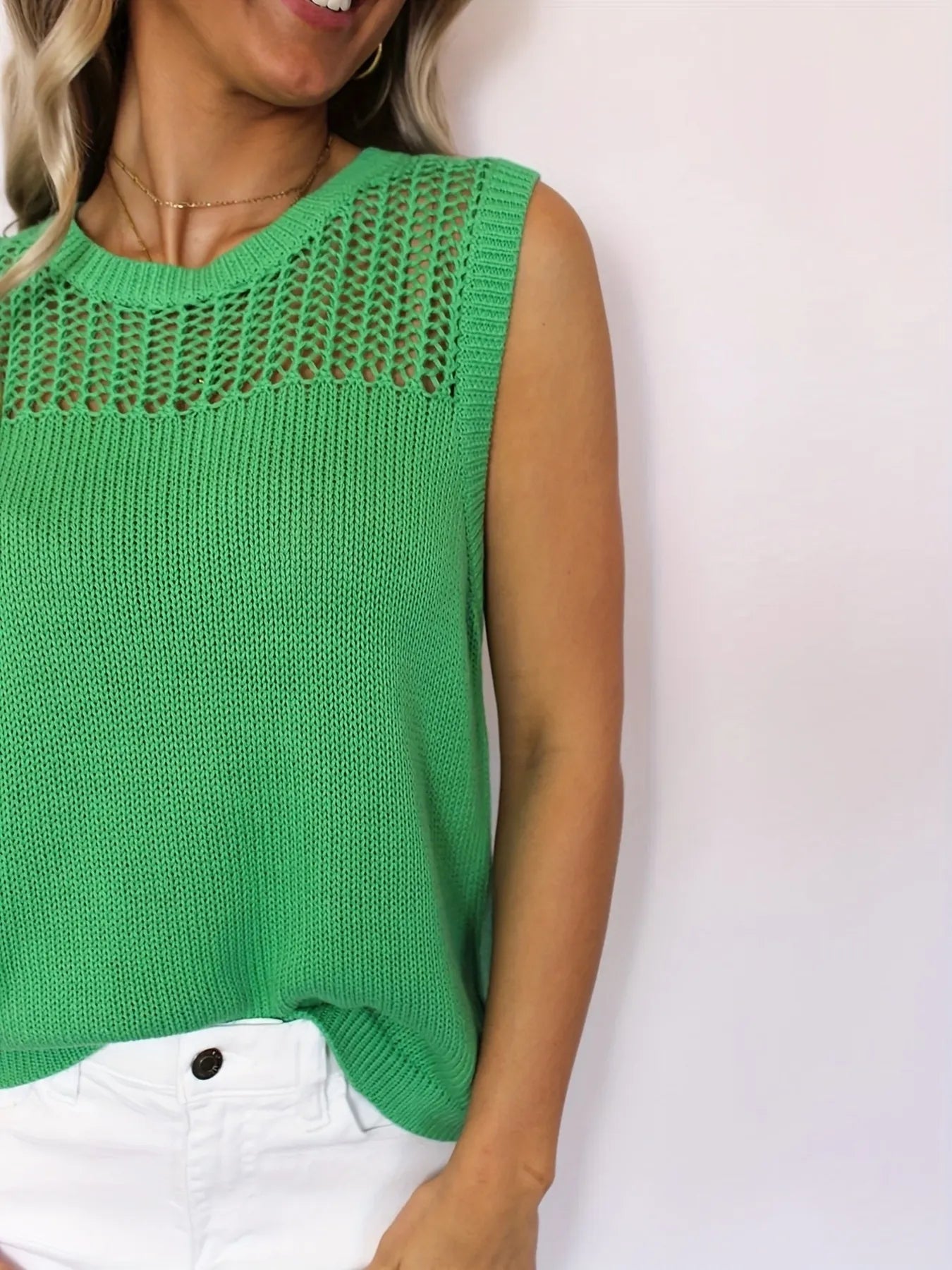 Openwork Round Neck Sweater Vest