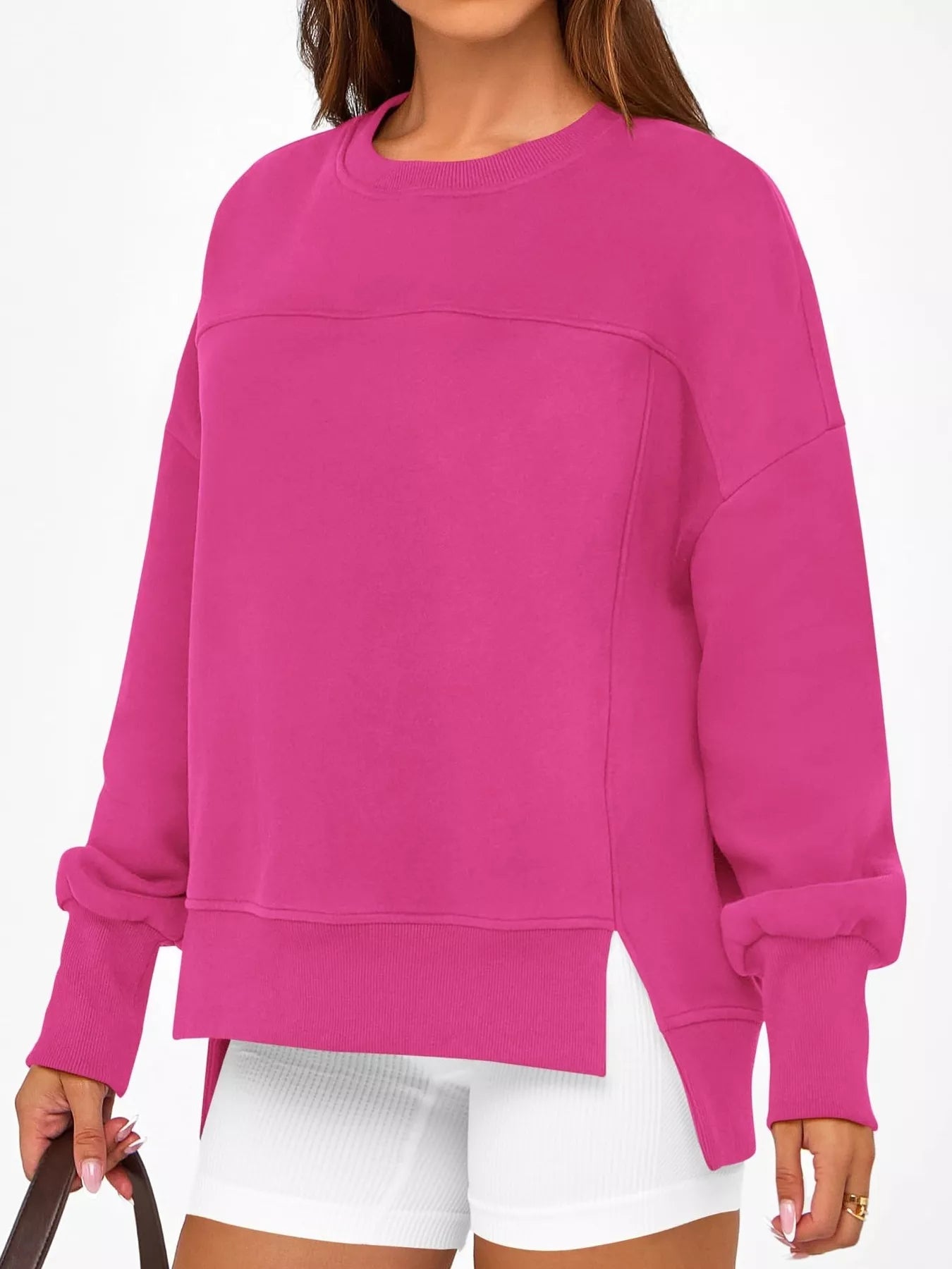 Slit Round Neck Dropped Shoulder Sweatshirt