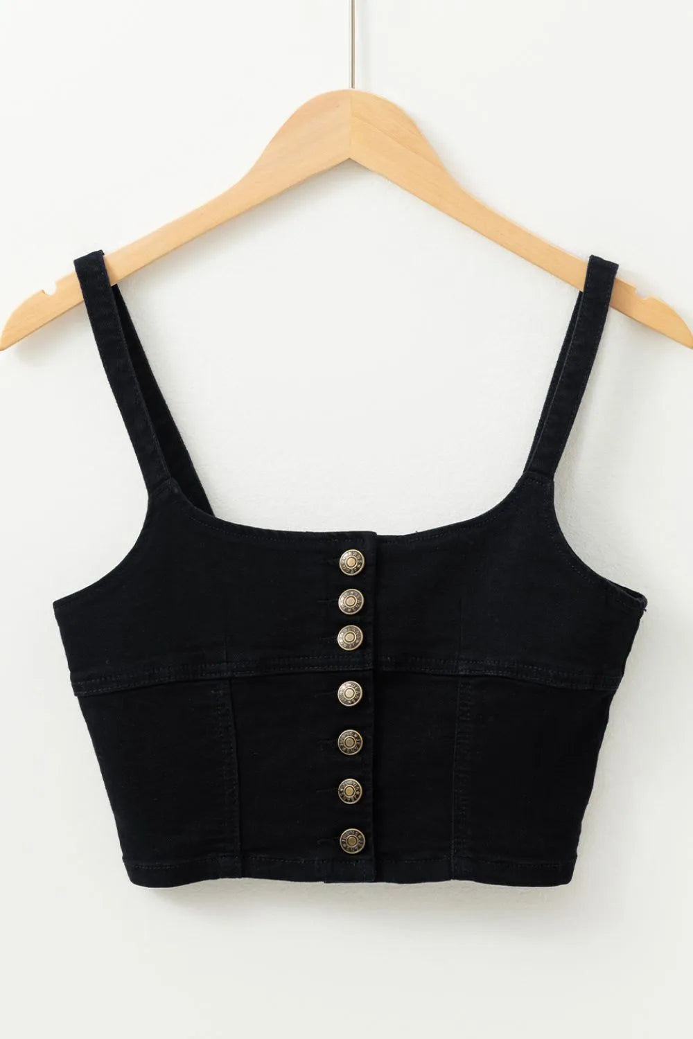 Acid Wash Buttoned Cropped Slim Denim Tank Top