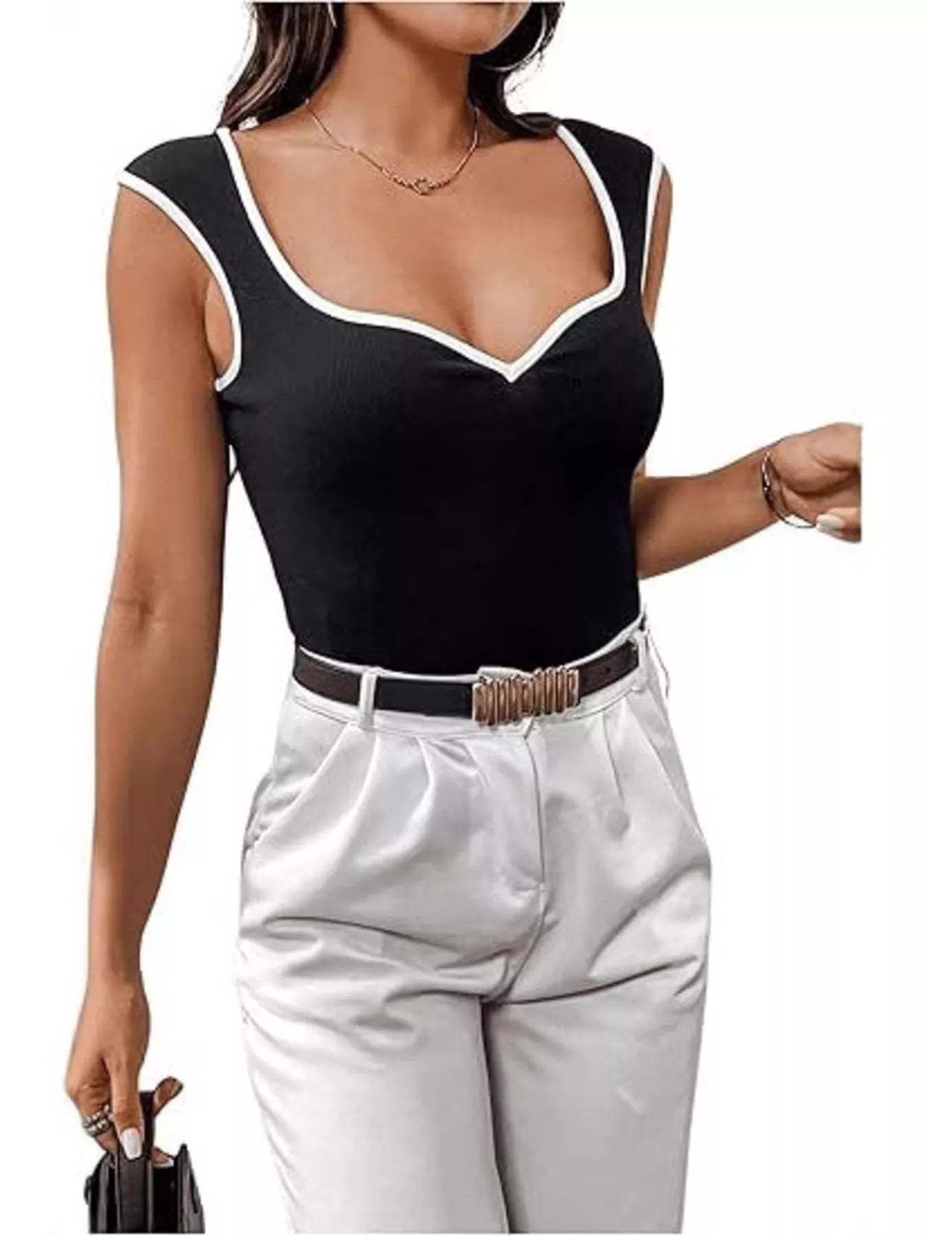 Contrast Trim Sweetheart Neck Knit Tank