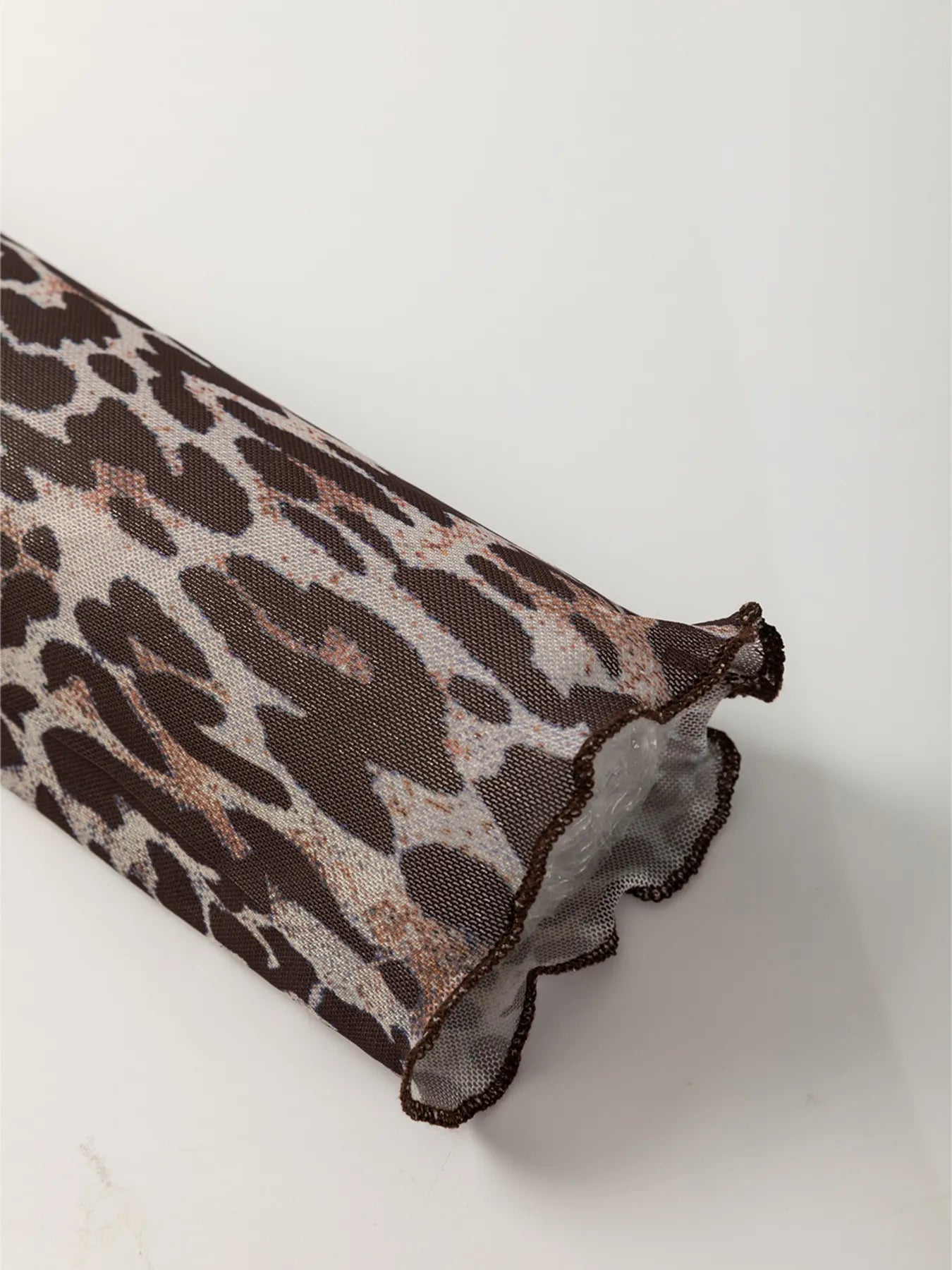 Leopard Sheer Mesh Long Sleeve V Neck Lace-Up Blouse
